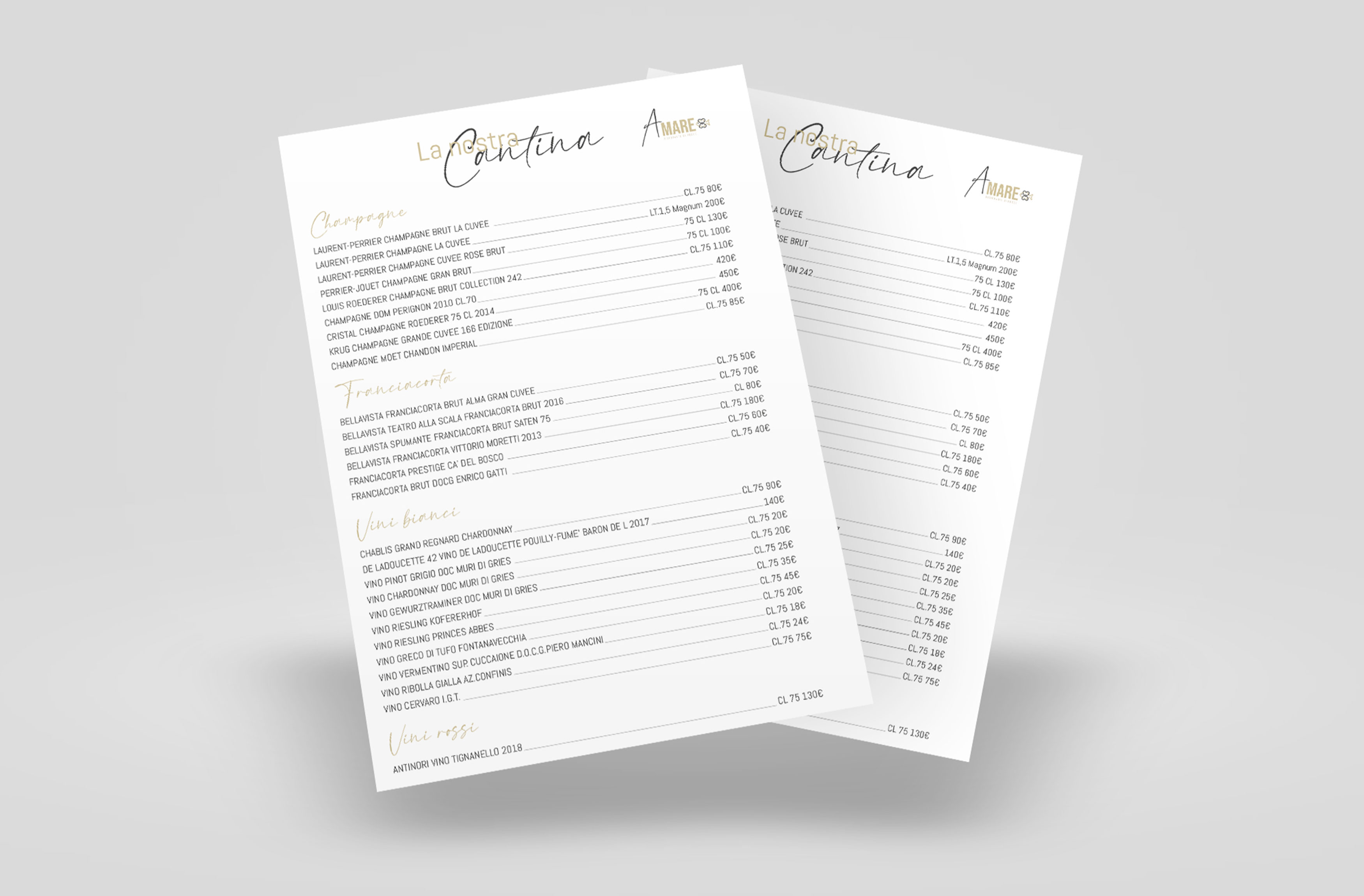 Per Amare, eccellenza del nostro territorio, ci siamo occupati di Brand Identity (logo design, coordinato menu e carta dei vini) sito web, shooting fotografico e contenuti social